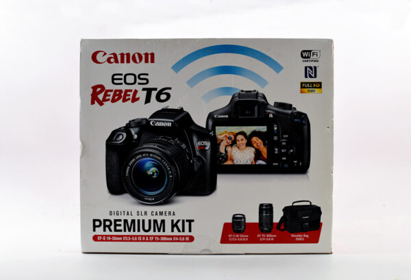 The EOS Rebel T6 camera can be ideal for anyone looking to step up their imaging game. Equipped with an 18.0 Megapixel CMOS image sensor and many automatic and creative options, the EOS Rebel T6 is easy to use, simple to share wirelessly with and delivers impressive image quality to your audience. Brilliantly clear and colorful images are at hand with the 18.0 Megapixel (APS-C) CMOS sensor and powerful DIGIC 4+ Image Processor, even in low light thanks to the camera’s wide ISO of 100–6400.